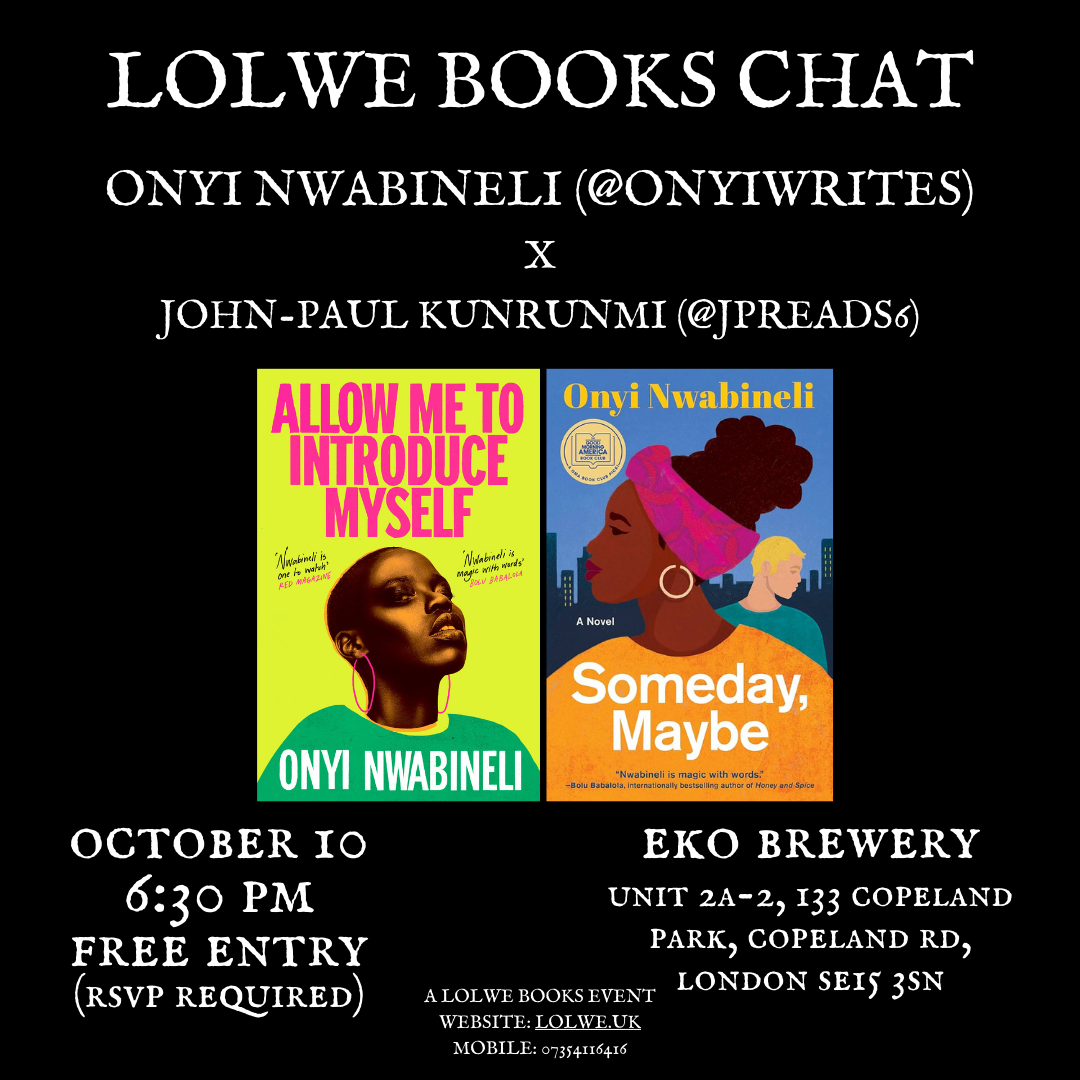 Featured Featured October 10 @ 7:30 pm - 9:00 pm Lolwe Books Chat: Onyi Nwabineli x John-Paul Kunrunmi Eko Brewery and Taproom Unit 2a-2, 133 Copeland park, Copeland Rd, London, United Kingdom Get Tickets Free – £16.99 10 tickets left